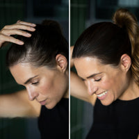 So simple! Tap the puff applicator onto the powder, dab over roots or thinning areas, and blend with your fingers.